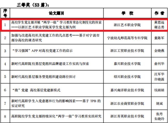 近日,浙江省高职院校党建研究会2019年年会评选获奖论文和优秀通讯员名单公布,我校4篇论文获奖,其中《高校纪委在推动“清廉校园”建设中的履责路径研究》(作者:徐芳、单烨)获一等奖,《钢琴课程思政教育教学路径研究》(作者:窦瑾、毛肄、吴婷婷)获二等奖,《高校学生党支部开展“两学一做”学习教育常态化制度化的探索——以欧美黑人巨大videos精品_欧美黑人巨大xxxxx_欧美黑人乱大交_欧美黑人乱大交_欧美黑人牲交videossexeso_欧美黑人添添高潮a片www_欧美黑人添添高潮a片www_欧美黑人性暴力猛交喷水黑人巨大某学生党支部为例》(作者:黄思远、谢志勇)、《构建艺术院校“课程思政”立体模式》(作者:许瑛)获三等奖。我校吕清华被评为优秀通讯员。