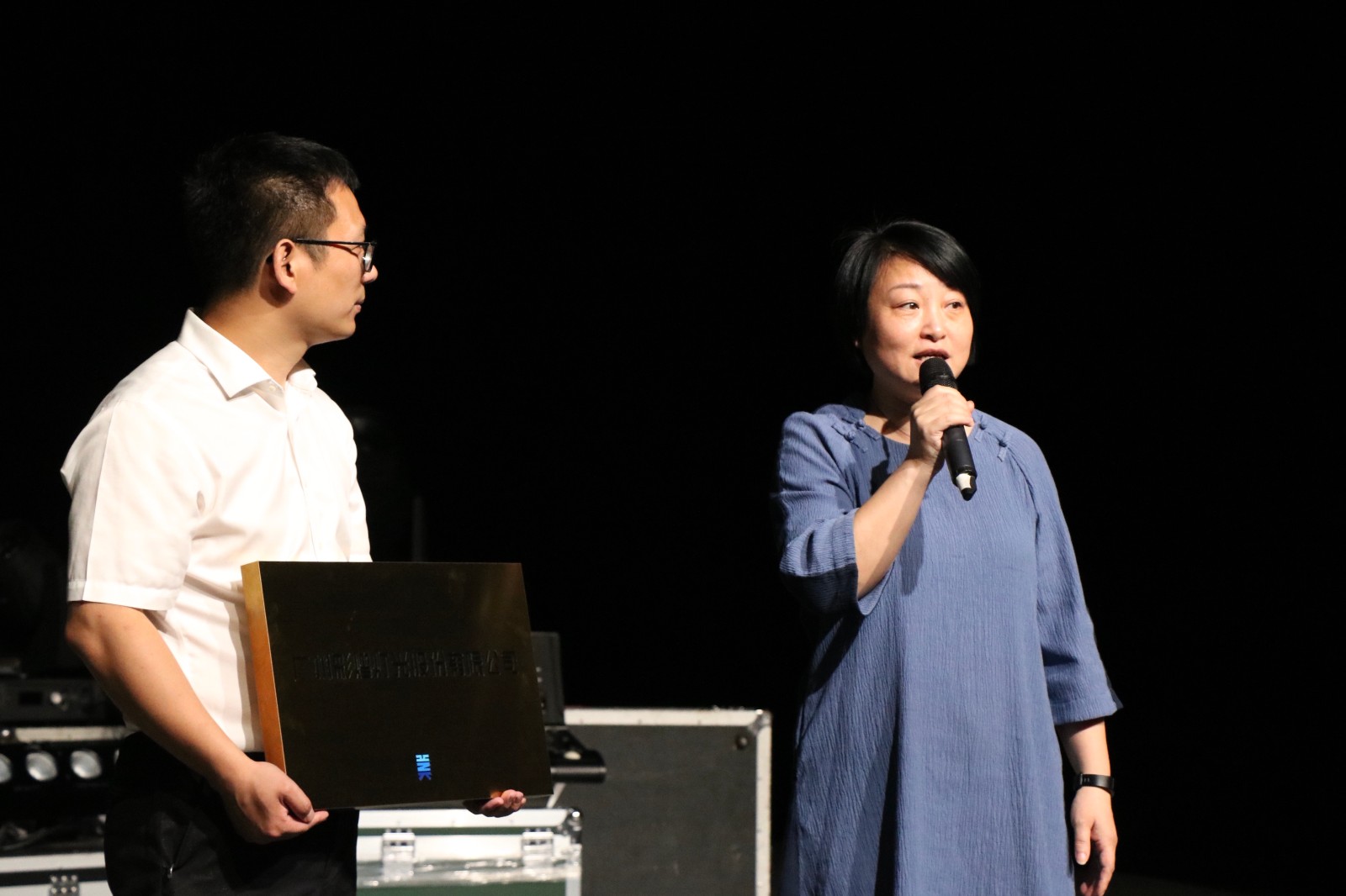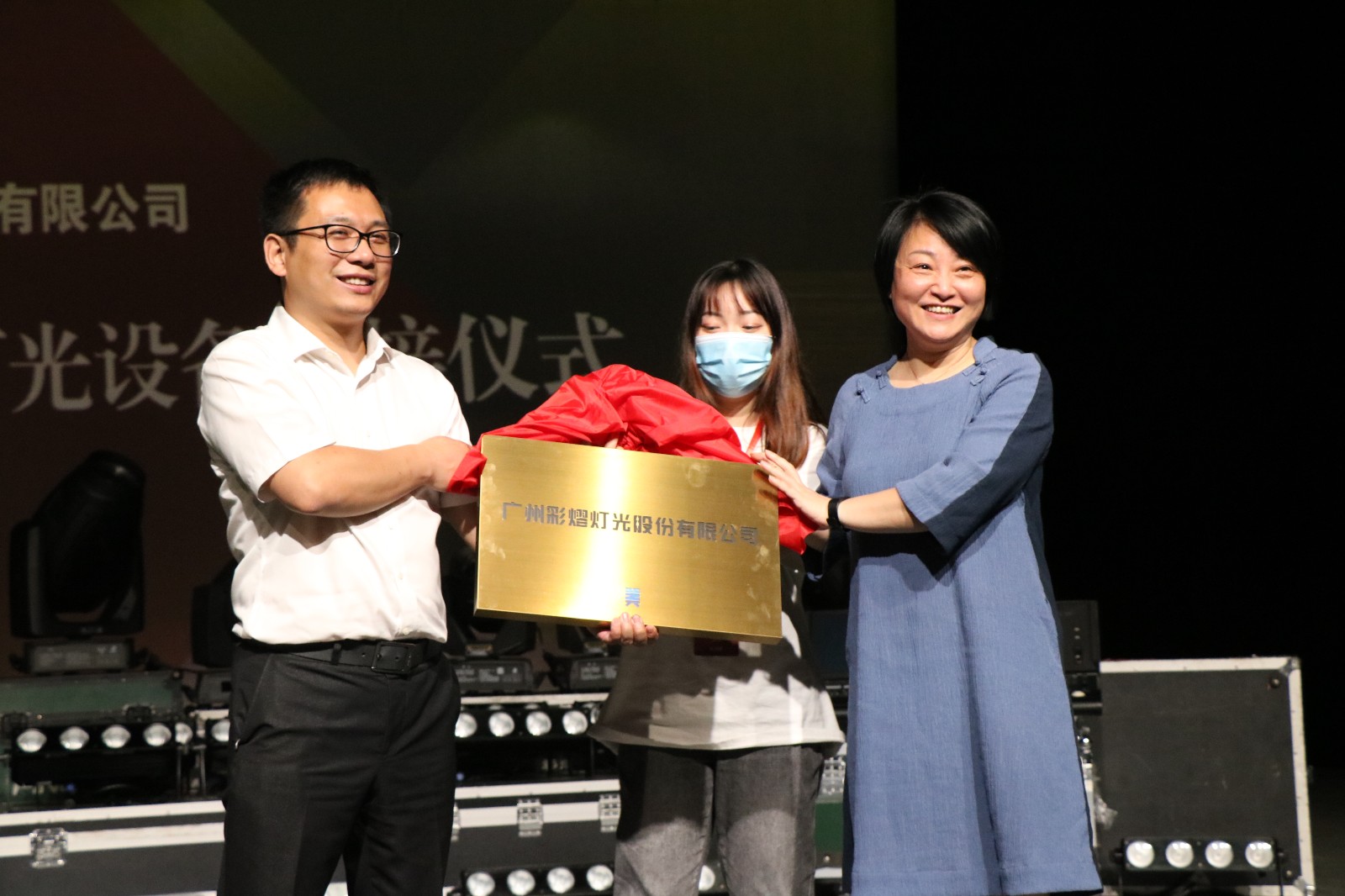 仪式上,支涛向广州彩熠灯光有限公司授牌,她希望:“我校与彩熠的基地能够做的更加扎实,希望能有更多的机会把舞台上的灯光和我们的专业结合起来,展现出更多的文艺作品。”