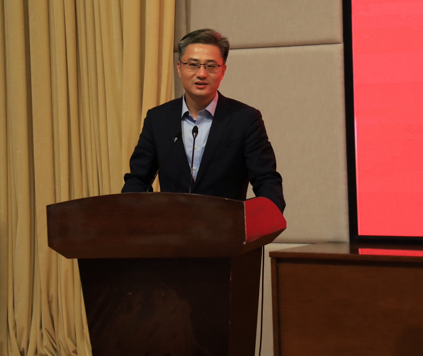 薛亮作讲话,他表示,国家奖学金是一项很高的荣誉,七位参加展示的同学事迹感人,不仅在专业学习上是佼佼者,同时在德、智、体、美、劳各个方面表现出色,是优秀大学生的代表,充分践行了社会主义核心价值观,是新时代学校立德树人的优秀成果。他对在座学生特别是2021级新同学寄予厚望,希望今后有更多优秀的同学登上国家奖学金评审展示的舞台。