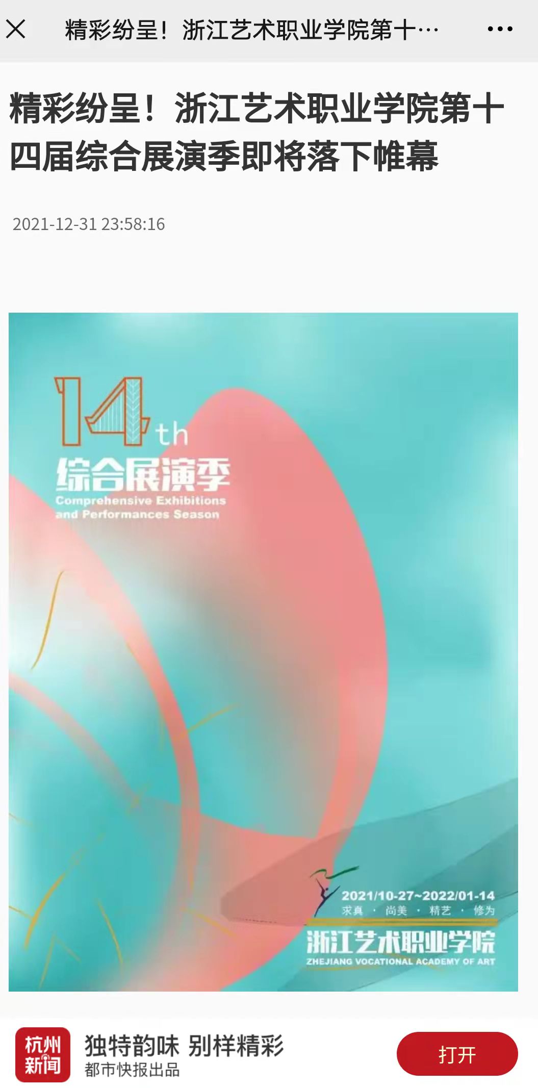11月20日,以“讲美丽中国故事,绘共同富裕画卷”为主题的第四届浙艺金鹄电影节暨原创影像大赛,作为本届展演季的重头活动之一在杭州瓶窑古镇举行。而在刚刚过去的12月20-24日,文化管理系2022届毕业生毕业综展分别在陶艺实训室、文物修复实训室等陆续开展,展览共有280名同学约290件毕业作品参加。