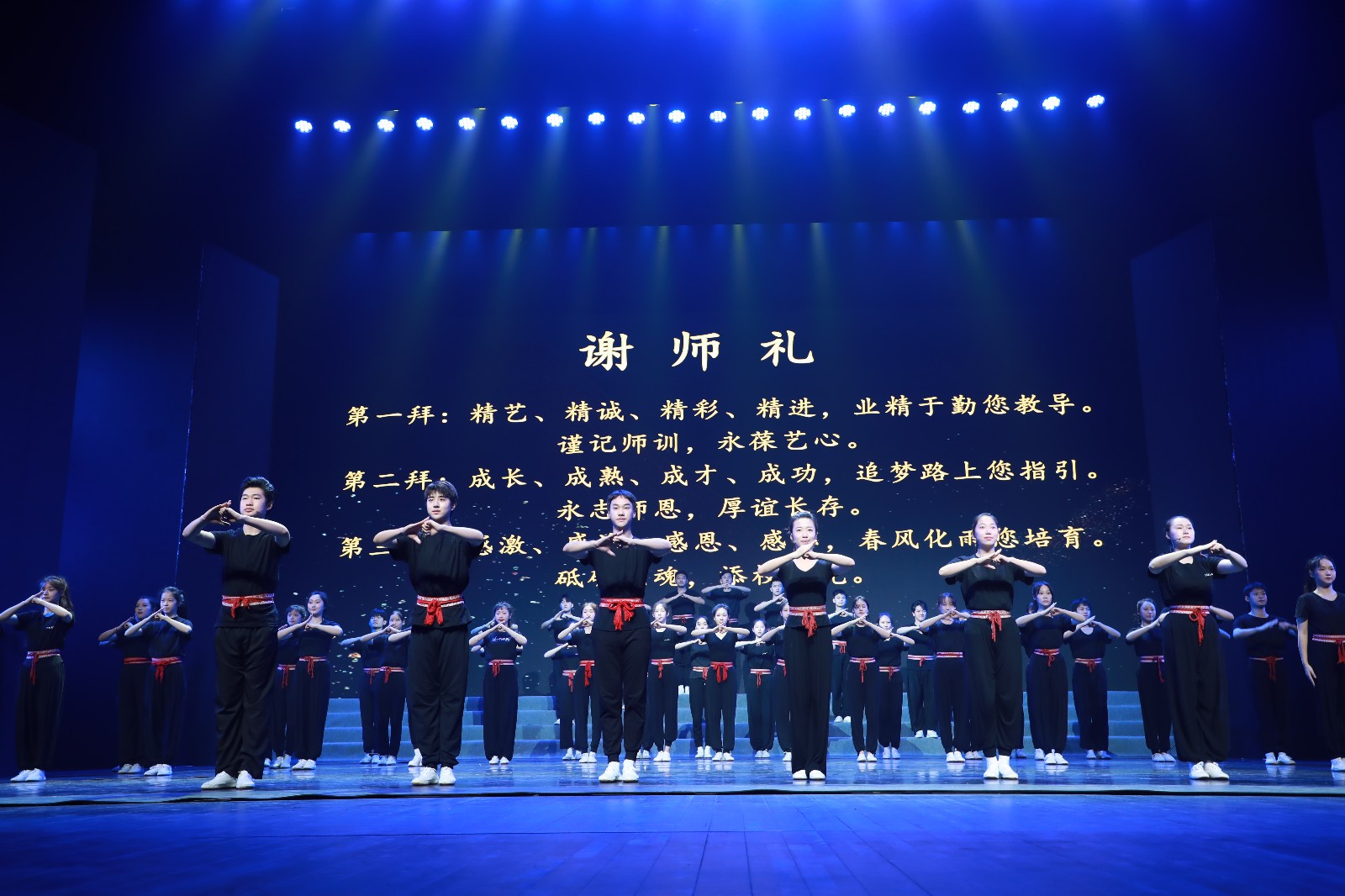 “双高”是什么?“双高”是高水平高职学校和专业建设计划的简称,是高职院校的国家队和省里排头兵,是同类艺术院校的领头羊。跻身国“双高”、省“双高”,你们是见证者,更是参与者,学校本来就是我们共同奋斗的家园。你们的付出和洒下的汗水,已经融入到她的每一寸地方,永远不会消失。