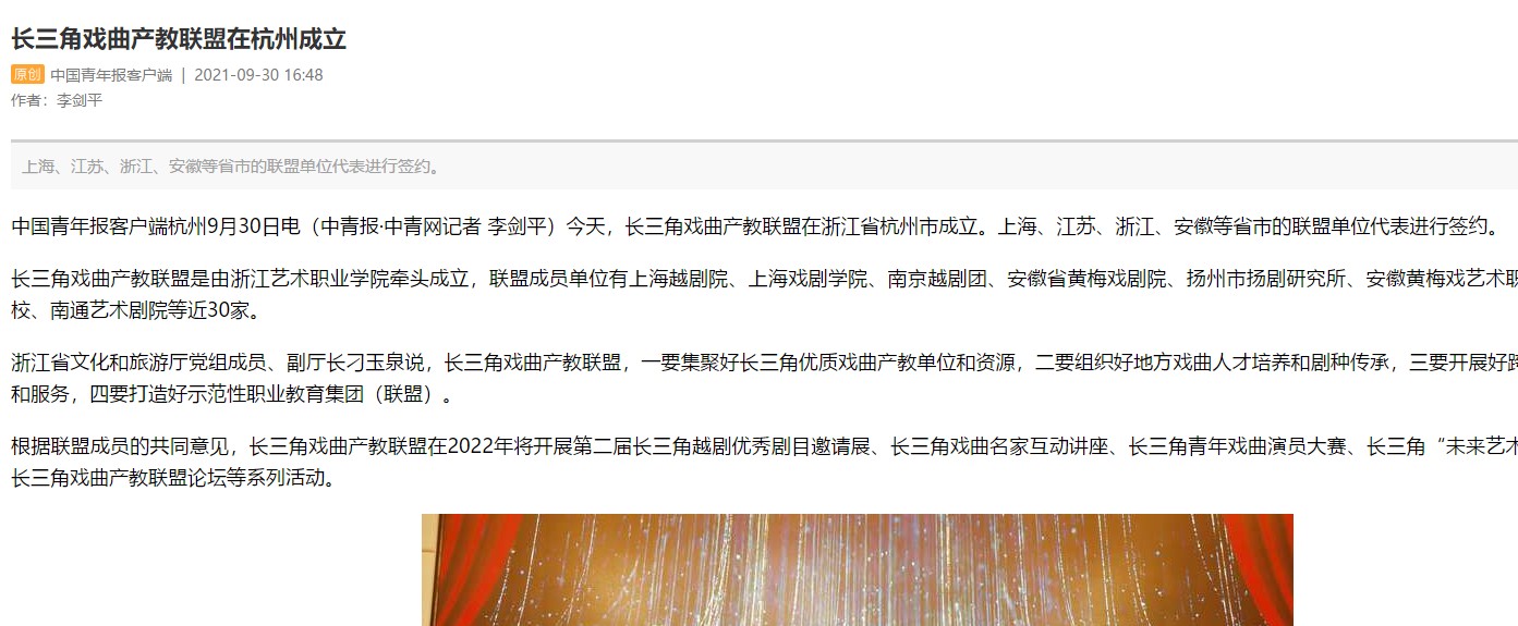 中国青年报:长三角戏曲产教联盟在杭州成立