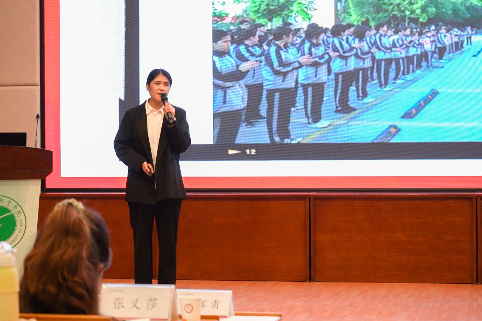 “习近平总书记在二十大报告中,27次提到奋斗,更强调了团结奋斗,可见,奋斗已成为习近平总书记讲话中的一个关键词,同时也成了中国人不变的信念。”基础教学部教师宣讲员魏晶晶以“十年伟大变革”为切入点,讲述了奋斗的中国和坚守信念努力奋斗的浙艺人,深情地表达了新时代新征程上的每一位中华儿女、每一位浙艺人都会因奋斗而更加幸福。
