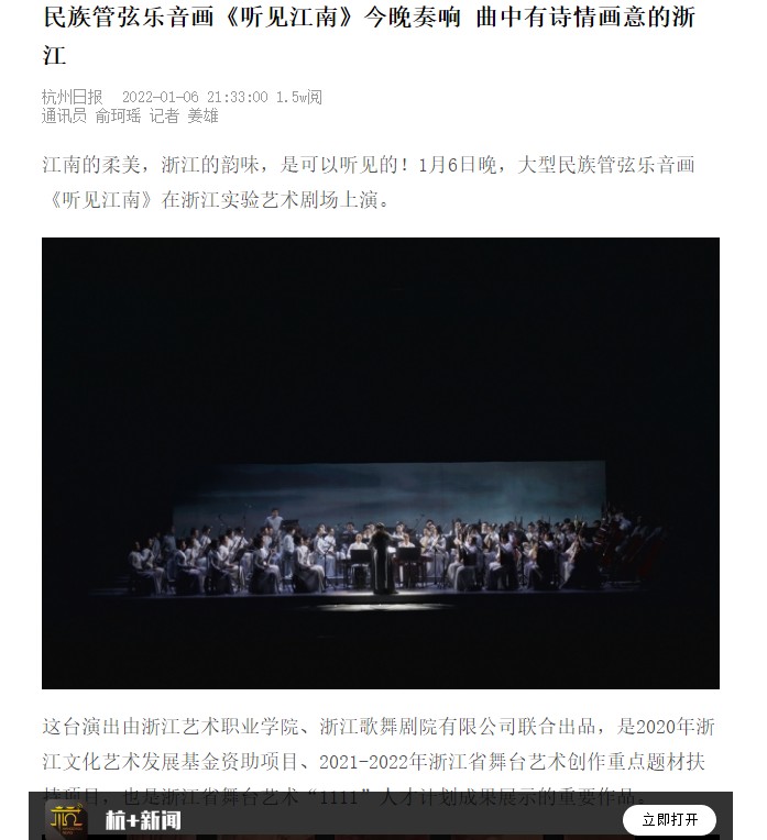 杭州日报:民族管弦乐音画《听见江南》今晚奏响 曲中有诗情画意的浙江