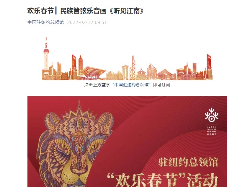 中国驻纽约总领馆:欢乐春节┃ 民族管弦乐音画《听见江南》