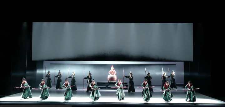针对本剧舞台以白色调为主体的视觉特点,结合布景空灵、流动的特性,周正平阐释灯光在创作中时时地把握了特殊的演剧造型样式,彰显光的流动画笔之功效,在光的情绪表达上面做到精准、流畅、富有强烈的视觉感受。具体来说,首先,本剧的总体样式充分彰显了当代东方现代审美中简约、唯美、诗化、凝练的艺术特点,因此在用光上尽量避免繁复的空间光束,追求色彩的简单和谐,真正做到惜光如金。第二,为了弥补小百花全女班在武戏上阳刚气质的不足,灯光在表现手法就必须更加富有张力和强烈的节奏感,赋予观众战争场面的意象景观。第三,本剧舞美的整体性非常强且非常简约,为了使舞台画面更加干净,灯光在情境美学追求上面就要尽量做到完整、精致。第四,本剧在群体创作的舞台艺术样式中,高度的追求综合艺术效果,各部门必须精力集中地高度投入自身创作和最终呈现的全过程。最后,本剧在灯光艺术呈现中追求艺术与科技的高度融合,遵循灯光为表演而设计的原则,显光不露灯,在艺术表达中不留任何的技术痕迹,做到完美。