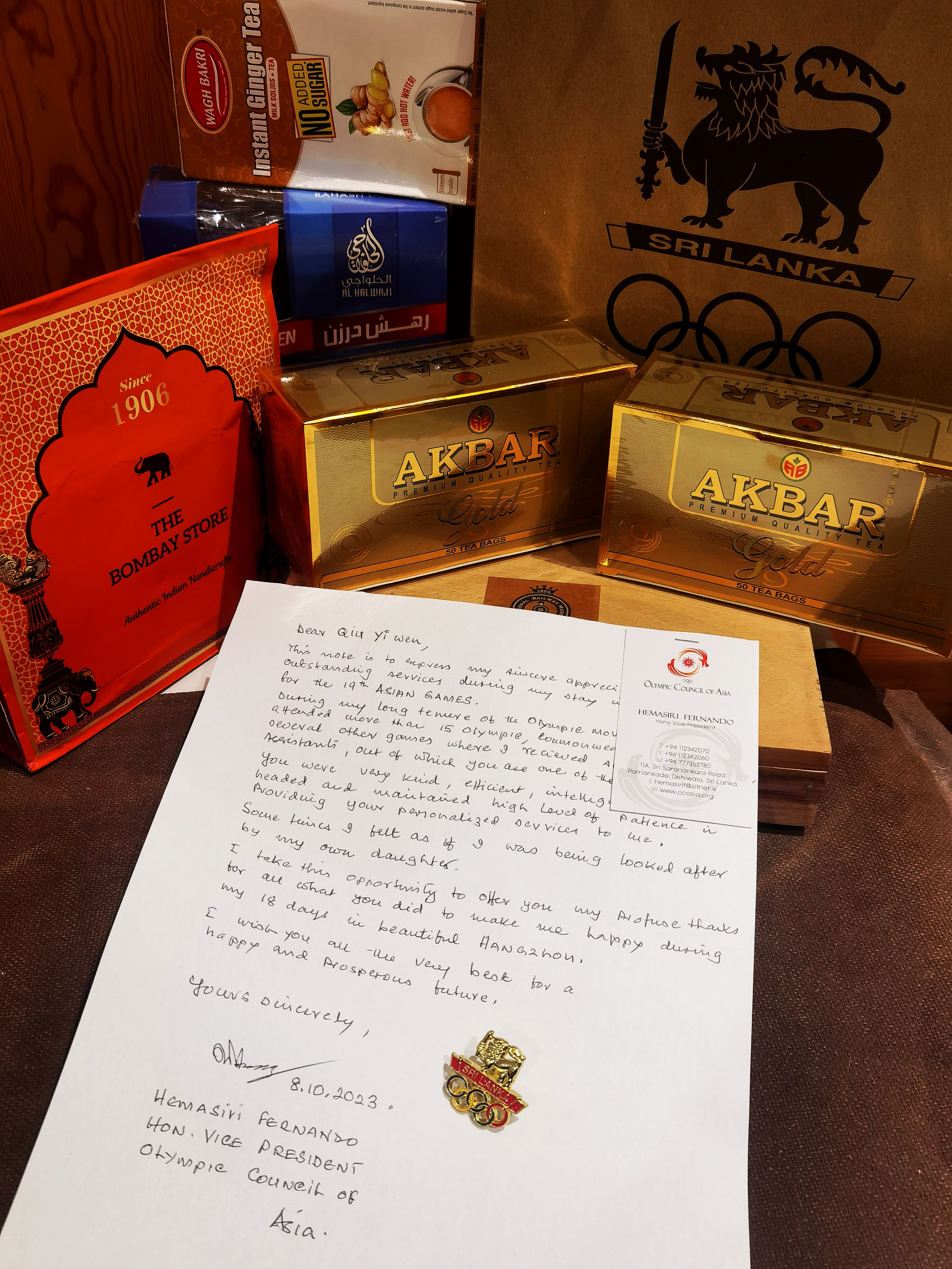 我的工作是OCA/APC大家庭总部饭店的大家庭助理,从上岗前的紧张到工作时的忙碌,我深感荣幸可以服务于亚运会,贡献自己的一份力量。我负责接待的是亚奥理事会的执委会名誉委员。作为他的助理,我全心全意为他服务。除了他的官方行程,我还带他体验杭州的特色美食和美景,让贵宾感受到杭州的人文气息和自然风光。他对我的服务非常满意,最后还给我写了感谢信,赠送给我从斯里兰卡带来的礼物,我也回赠了中国的特产。我指导的学生志愿者负责接待的宾客也在走之前赠送了小礼物。他们的肯定让我觉得这段时间的所有辛苦付出都是值得的。在亚运会的这段日子里,我秉承着“奉献·友爱·互助·进步”的精神,虽然经常早出晚归,但我感觉每天都非常充实,还认识了许多志同道合的朋友。能服务于亚运,是我人生中最靓丽的一道风景线。感谢亚运,心心相融,爱达未来!