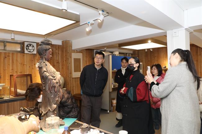 冯英一行还参观了“匠心守艺”手工艺教学成果展、浙江实验艺术剧场、陶艺室、文物修复实训室等。