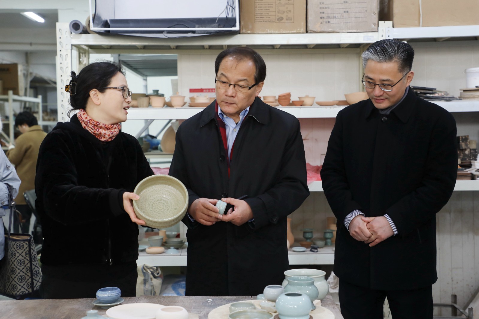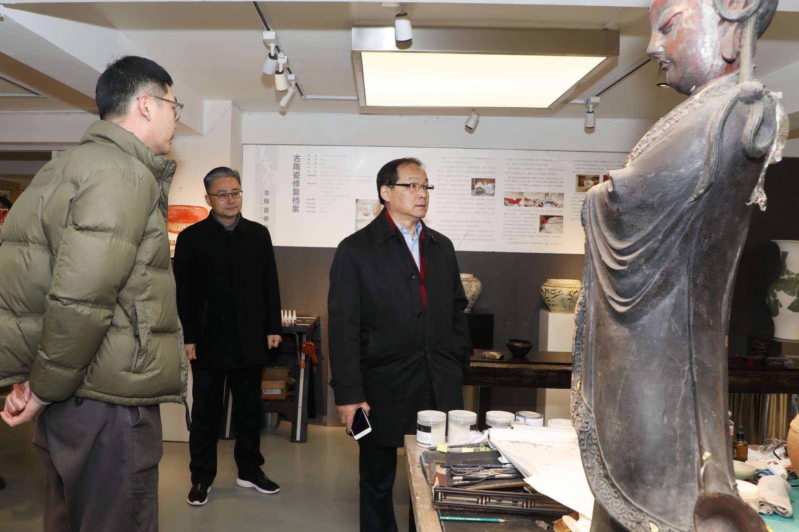 段周武一行还参观了戏曲学院、音乐学院、舞蹈学院、文物修复实训室、陶艺室和“匠心守艺”手工艺教学成果展等。