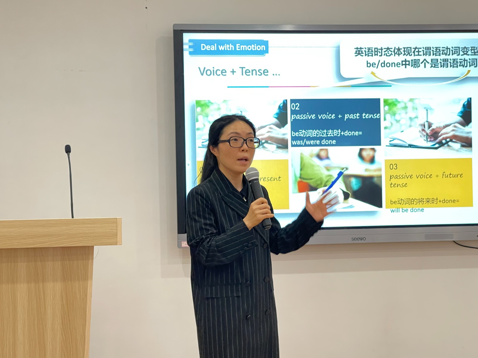 高职组文史、外语、综合和体育教研室的6位教师分别演绎了《古诗词诵读》《英语语法》《情绪情感心理活动》《篮球》《羽毛球》与《健美操》的课堂教学,虽然是无学生授课,但老师们教态自然、语言流畅,思路清晰,逻辑严谨,通过情景导入、现场示范以及案例分析等方式深入浅出地讲解了教学内容,展示出驾驭课堂教学的艺术,也体现了创新精神和课堂教学研究的能力。
