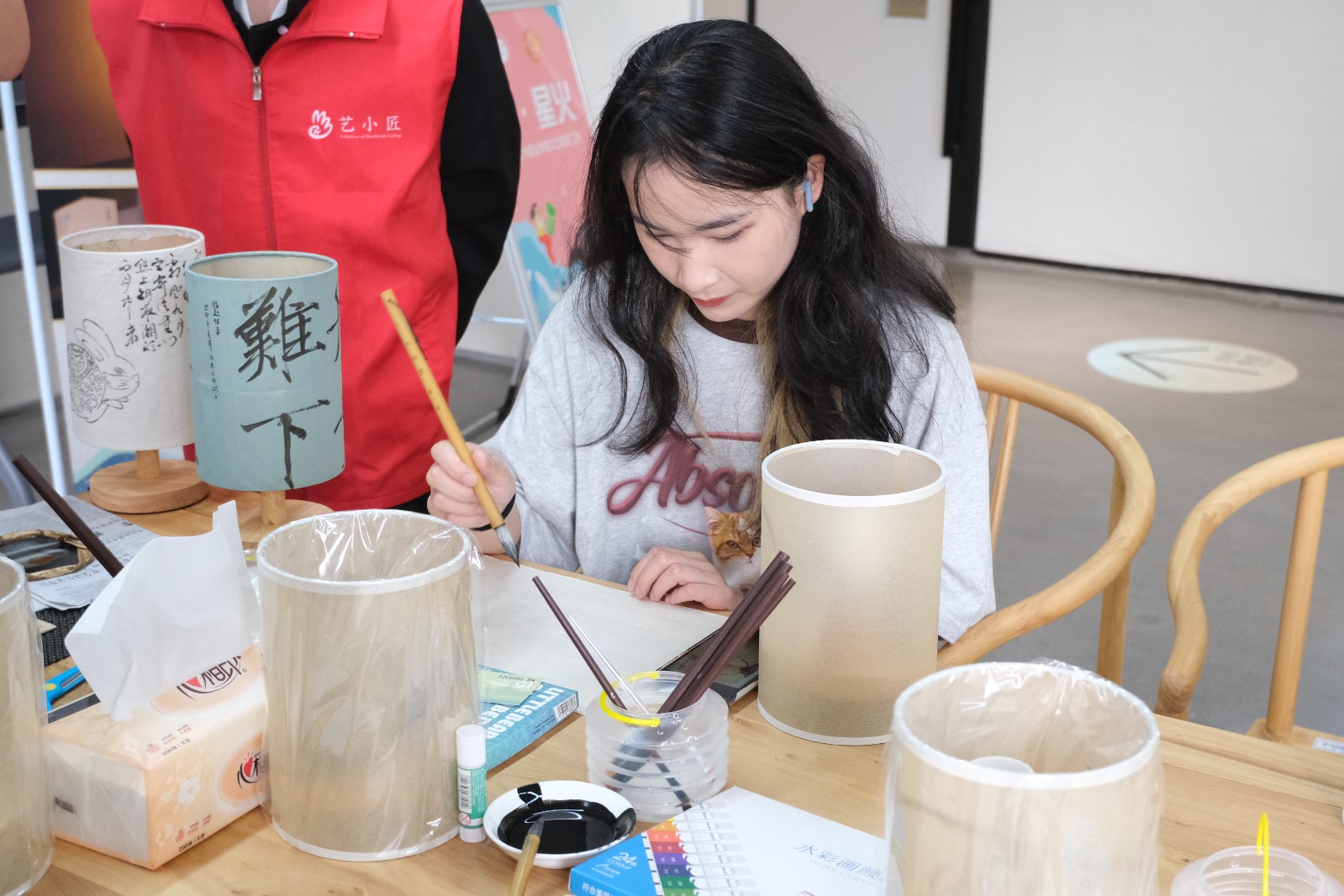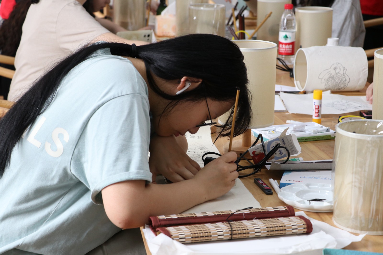 5月30日,手工艺学院在立业园实训室三楼开展手工艺活态体验——手绘台灯活动。全校三十多位师生参与,现场座无虚席,师生热情高涨。