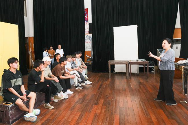 戏曲学院2022级越剧专业学生的第一课是腿功课,授课老师是二级演员、形体教研室主任柴轶佳。课堂上,柴轶佳为学生作示范,为每位学生纠正动作,一板一眼,注重细节调整,力求动作到位。