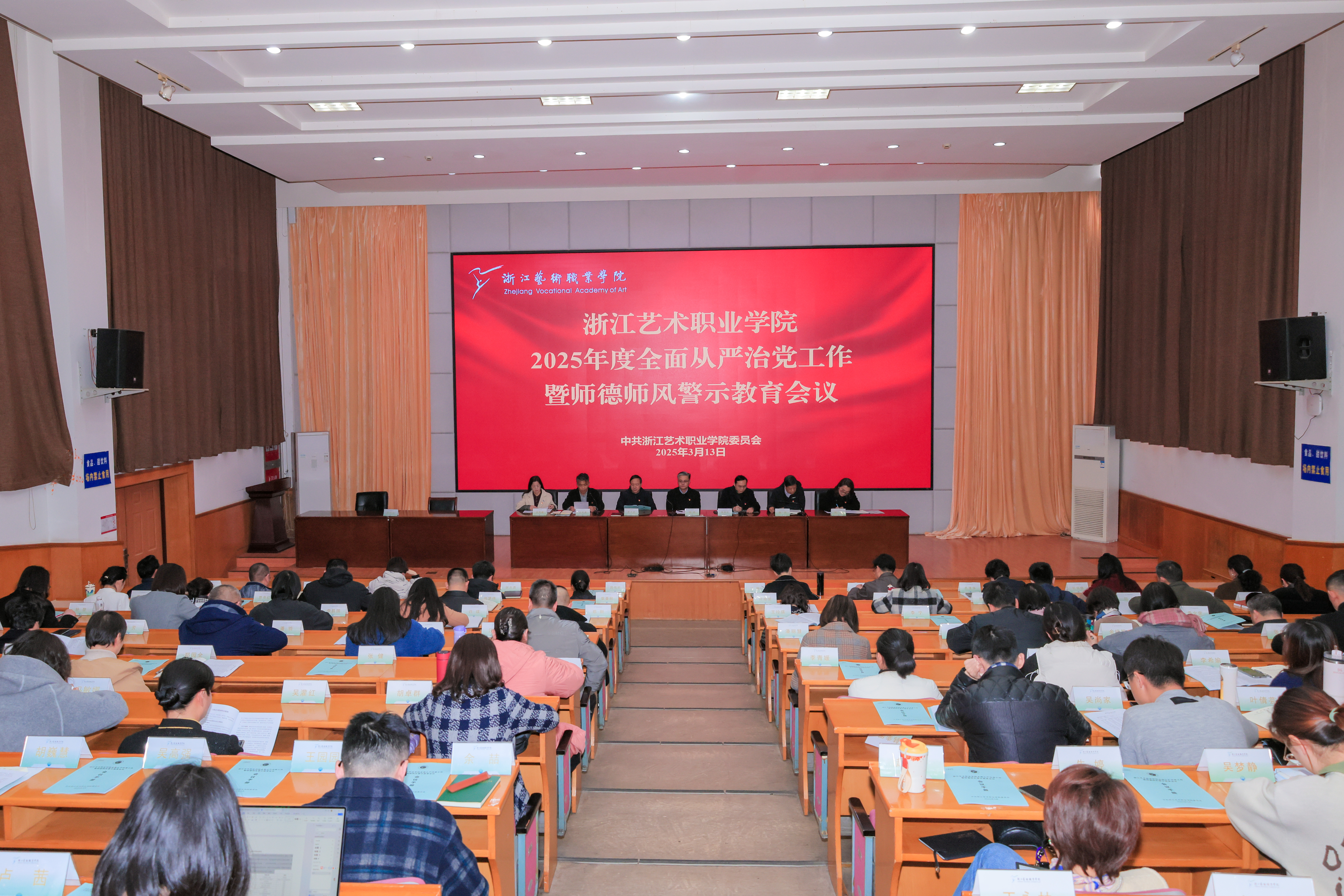 校党委书记薛亮出席会议并讲话,党委副书记、校长施俊天主持会议,党委委员、纪委书记沈军甫作党风廉政建设工作报告,党委委员、副校长刘杨作师德师风警示教育。