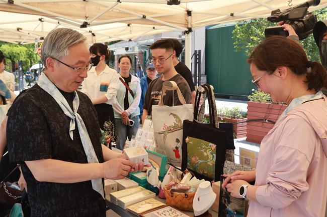 在热烈的掌声中,杨建武敲响开市锣声,“浙艺好市”正式拉开帷幕。来自浙江文化空间发展有限公司、浙江华云文化集团(有意思书房)、浙江省工艺品进出口有限公司(省工艺美术研究院)、杭州晓风图书有限公司等知名文化企业的文创作品、浙艺手艺作品纷纷亮相:复刻文物元素的雅致饰品、融合传统工艺的数字藏品、古籍纹样重构的创意文具……多元载体与创新表达交相辉映,生动诠释着“文物+创意”的无限可能,历史文脉在当代生活的烟火气中绽放出鲜活生命力。